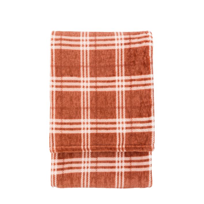 Soft to the touch flannel fleece in nutmeg and soft white - ideal for adding a cosy touch to any room.
